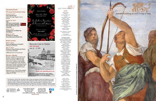 Updates on projects: Campaign for San Sebastiano, Carpaccio’s St Ursula Cycle, Titian’s Madonna di Ca’Pesaro altarpiece, and more.