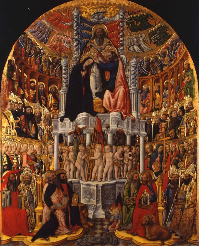 Representations of the Coronation of the Virgin held great local significance in Venice since the completion of Guariento’s fresco of 1365 in the Sala del Maggiore Consiglio, the Great Council Hall of the Palazzo Ducale; thereafter the subject remained central to the Venetian Republic’s self-association with the Virgin Mary.