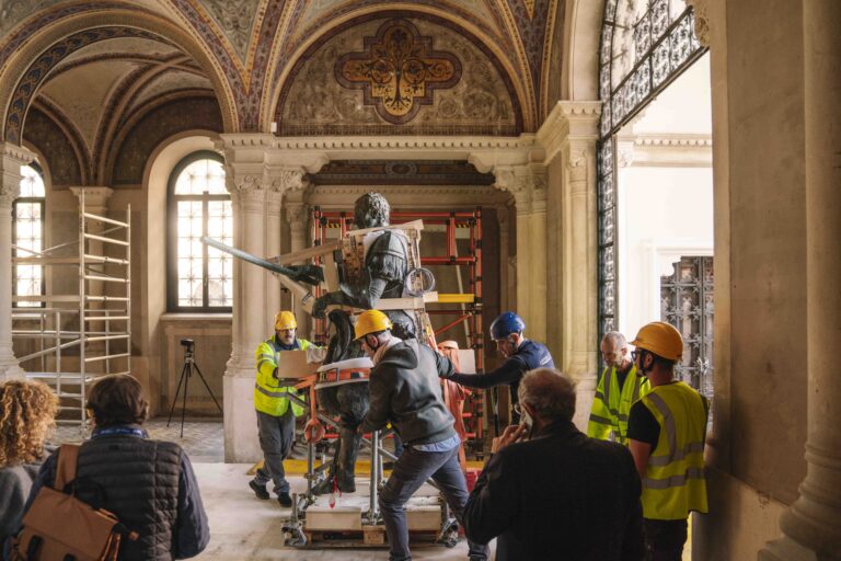 The two days of intense work were carried out with great attention and professionalism by all the skilled teams involved: restorer Nicola Salvioli; engineers Filippo Casarin and Marco Mocellini of R-Struct Engineering, assisted by the invaluable expertise of Arterìa of Florence, which managed the extremely delicate stages of moving the entire bronze group; investigations and structural assembly were handled by Expin Srl.
