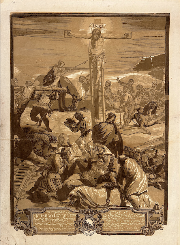 Working proof impressions, which are pulled to evaluate progress while the artist continues to work on the woodblocks, are exceedingly rare in Jackson’s oeuvre, with many being unique. The presence of six such proof impressions in the Fondazione Musei Civici di Venezia collection is therefore truly exceptional. For instance, the impression cataloged as Correr 3069 originates from a single block (of four) intended for the left panel (of three) of Jackson’s print The Crucifixion (after Tintoretto). Notably, the original painting is currently undergoing restoration by Save Venice. This impression has only one known counterpart, which resides in the National Gallery of Art in Washington.