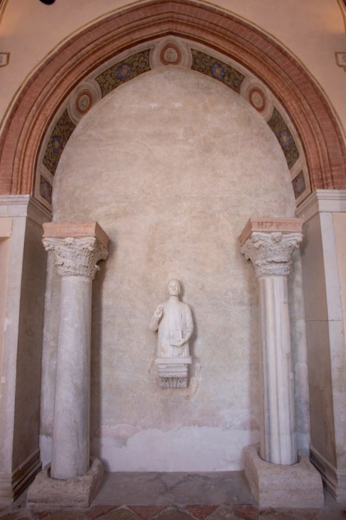 On the wall opposite the main altar two freestanding Veneto-Byzantine columns, probably from the eleventh century and possibly from the adjacent baptistery, flank a late fifteenth-century bust of the Blessed Lorenzo Giustinian (1381–1456), appointed the first Patriarch of Venice in 1451. The attribution of this bust is not certain, but it may be by an artist in the circle of Antonio Rizzo or Jacopo Bellini.