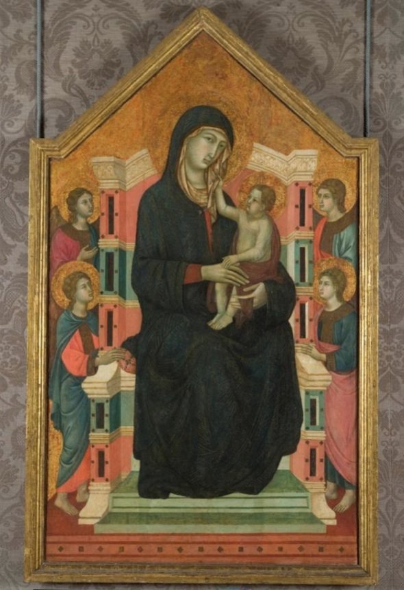 The Maestro or Master of Badia a Isola was a Tuscan artist whose precise identity is unknown. He owes his name to a painting in an abbey church in Abbadia a Isola, located just outside of the town of Monteriggioni in the province of Siena. He was a contemporary of Duccio di Buoninsegna, and his works are often considered in close relation to paintings from Duccio’s early period. Indeed, scholars in the nineteenth century — as well as some more recent experts — have proposed that the Master of Badia a Isola could possibly be identified with the young Duccio due to stylistic similarities with the Rucellai Madonna in the Uffizi Galleries in Florence. Other works by the hand of the Master of Badia a Isola have been identified in collections in Italy, Germany, and the United States.