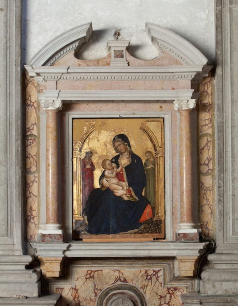 This painting of the Madonna of Humility may have been executed in the first quarter of the fifteenth century; it is thought to have originally been in the church of Santa Maria della Celestia and transferred to San Francesco della Vigna in 1569 when the Celestia complex was severely damaged by a gunpowder explosion in the nearby Arsenale. Once relocated to the Franciscan church, the Madonna was placed above the tomb of the founder of the Capuchin Order, Brother Matteo dei Bassi.