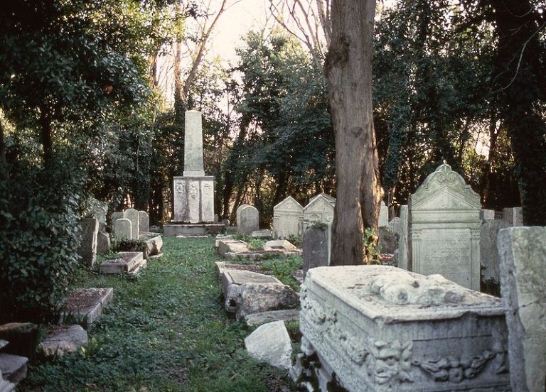 In 1386, the Venetian Republic granted permission to the Jewish community to bury their dead on the island of the Lido, on a piece of land belonging to the Benedictine monastery of San Nicolò. Because of a large Jewish influx in Venice in the sixteenth century and two plagues (in 1576 and 1630), additional land was granted for Jewish burial, but in the mid-1600s nearby military fortifications began to encroach on the cemetery’s borders and the Venetian Republic took some land away from the Jewish community.