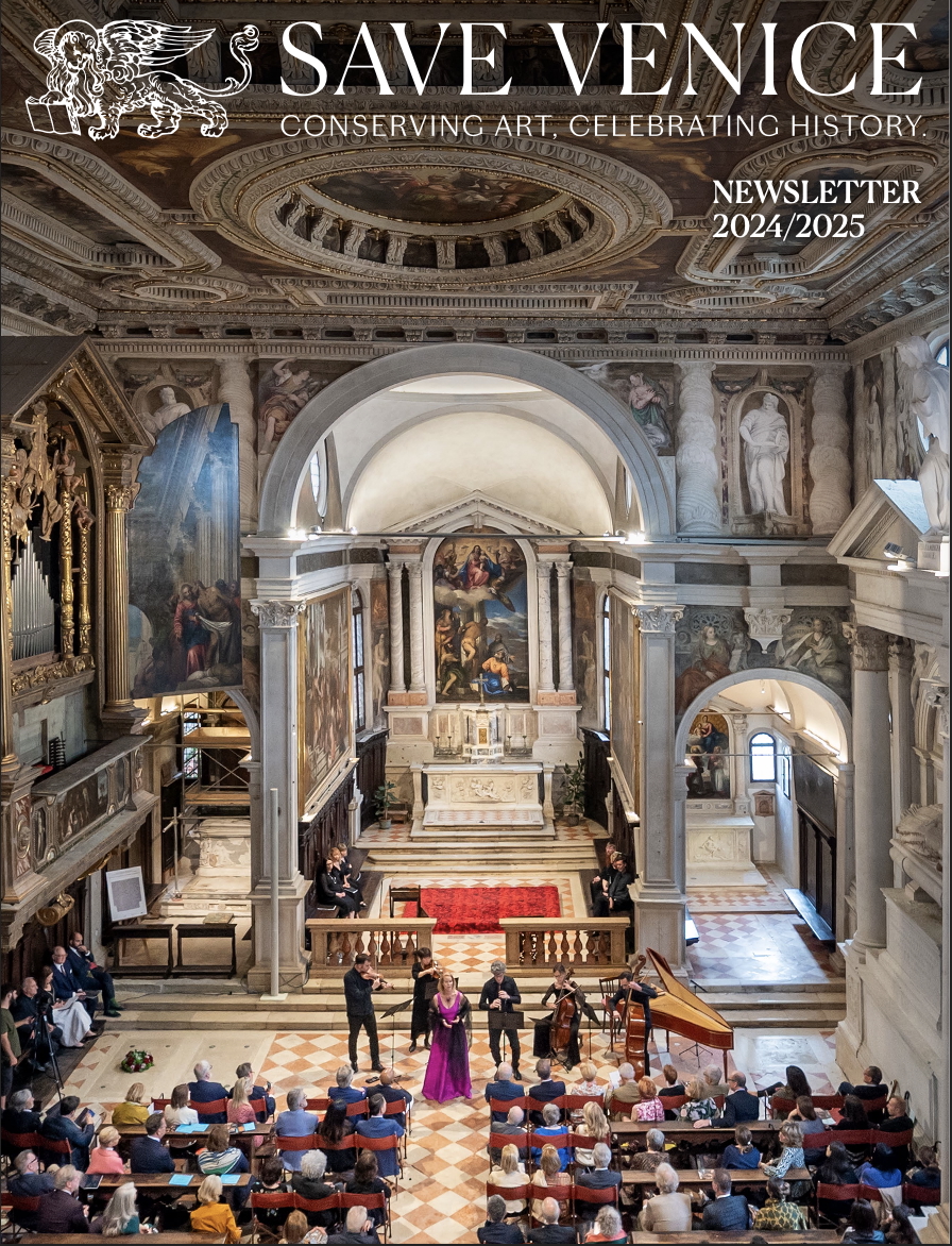 The Save Venice 2024/2025 Newsletter highlights the major milestone completion of the campaign for the church of San Sebastiano, and the many other projects underway or about to begin, including the Room of the Four Doors in Palazzo Ducale, the mosaic presbytery floor at Santa Maria Assunta on Torcello, Donatello’s Gattamelata Monument in Padua as well as his Saint John the Baptist sculpture in the Basilica dei Frari, Tintoretto’s Crucifixion in the Scuola Grande di San Rocco, as well as two paintings by the artist in the presbytery of the Abbey of San Giorgio Maggiore. Other special news includes the creation of Fondazione Save Venice ETS in Italy, the ongoing Women Artists of Venice program, and efforts to preserve the Jewish patrimony of Venice. Ongoing educational initiatives featured include ongoing support for the Istituto Veneto per i Beni Culturali restoration school, publications, scholarly conferences, and exhibitions to share conservation findings. Read about special events in Venice, Boston, New York, California and beyond.
