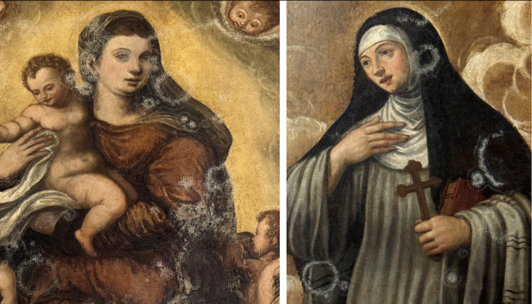 Conservation treatment will also involve careful surface cleaning to remove accumulated dust, grime, discolored varnishes, and previous inpainting. These interventions will not only stabilize the works structurally but also recover the visual integrity intended by the artist.