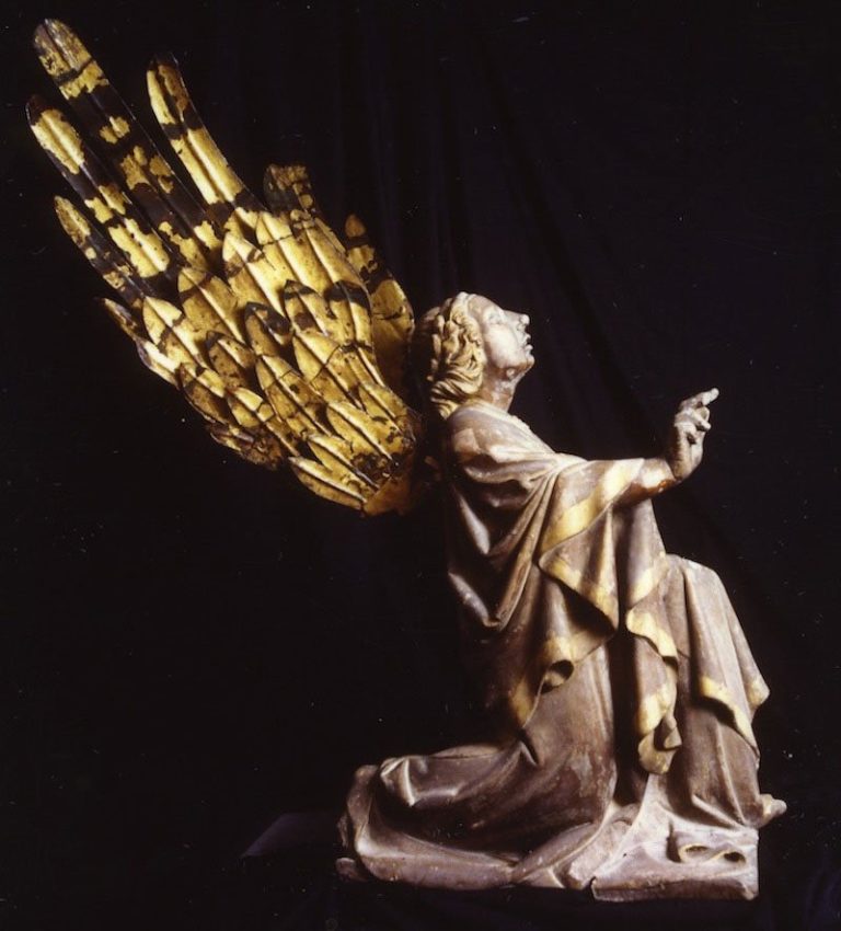 From the mid-1300s until 1834, the Pala d’Oro altarpiece in San Marco was flanked by two sculptures depicting the Archangel Gabriel and the Virgin Mary, which together represent the Annunciation. The attribution of these sculptures remains uncertain, but scholars have suggested that they are the work of Marco Romano, who was active in Venice around 1318 – 1320 in the circle of Giovanni Pisano. The marble figures are surprisingly naturalistic, and closely follow the model of Gothic sculpture produced in and around Florence and Rome during that period.