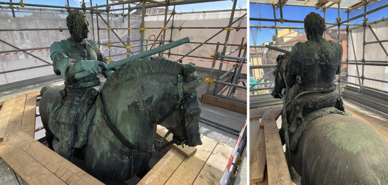 The two days of intense work were carried out with great attention and professionalism by all the skilled teams involved: restorer Nicola Salvioli; engineers Filippo Casarin and Marco Mocellini of R-Struct Engineering, assisted by the invaluable expertise of Arterìa of Florence, which managed the extremely delicate stages of moving the entire bronze group; investigations and structural assembly were handled by Expin Srl.