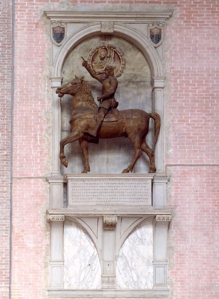 During the Renaissance, the Venetian government commissioned several equestrian monuments that served as tributes to the loyal and virtuous service of Venice’s hired military commanders, or condottieri. Following the classical precedent of equestrian monuments established by the Roman Empire, Venice used these monuments to honor its great generals, as a reward as well as a stimulus for future soldiers.