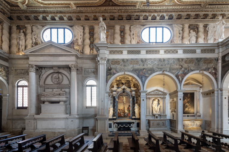 The construction of the Church of San Sebastiano began in 1506, and the main structure was nearly completed by 1548, when Bernardo Torlioni, a bishop from Verona, became prior of the church. According to documentation published by Emmanuele Antonio Cicogna, under Torlioni’s leadership, a fundraising campaign was launched to support the struggling Hieronymite order. This campaign also involved the construction of six side chapels, three on each side of San Sebastiano’s nave, with the support of wealthy nobles and other influential individuals. In exchange for their contributions, these benefactors were granted burial rights for their families in the respective chapels they sponsored. Additionally, donors were responsible for financing and commissioning the decoration of their chapels, a customary practice in Venetian churches.
