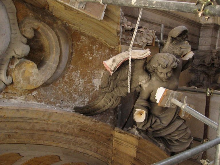 From 1749 to 1776, the church of San Barnaba was completely renovated following the design of Lorenzo Boschetti, the architect who built Palazzo Venier dei Leoni, now the Peggy Guggenheim Collection. In 2008 a structurally compromised building adjacent to the church of San Barnaba put the apse of the church at risk; the limestone and marble high altar was in particular danger. Following conservation work to ensure the structural stability of both buildings, Save Venice provided funding to restore damage to the upper cornice of the high altar and its crowning angel sculptures.