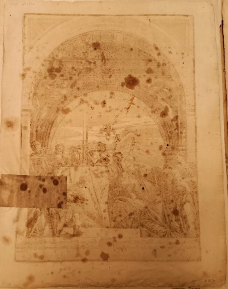Each of the 52 sheets will undergo a thorough mechanical cleaning and double washing by immersion when possibile. Detrimental non-original materials including old mendings and invasive backing supports will be carefully removed. The works will be treated with an alkaline solution to reduce their acidity to guarantee their long-term preservation. Tears and gaps will be repaired and integrated and new custom mounts and tailor-made boxes will be made to house the collection safely for the future.