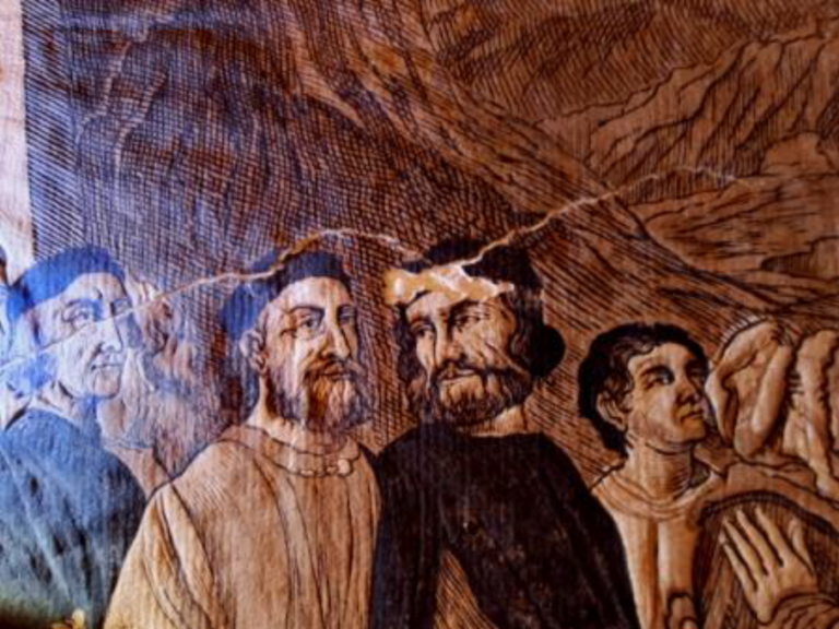 Working proof impressions, which are pulled to evaluate progress while the artist continues to work on the woodblocks, are exceedingly rare in Jackson’s oeuvre, with many being unique. The presence of six such proof impressions in the Fondazione Musei Civici di Venezia collection is therefore truly exceptional. For instance, the impression cataloged as Correr 3069 originates from a single block (of four) intended for the left panel (of three) of Jackson’s print The Crucifixion (after Tintoretto). Notably, the original painting is currently undergoing restoration by Save Venice. This impression has only one known counterpart, which resides in the National Gallery of Art in Washington.