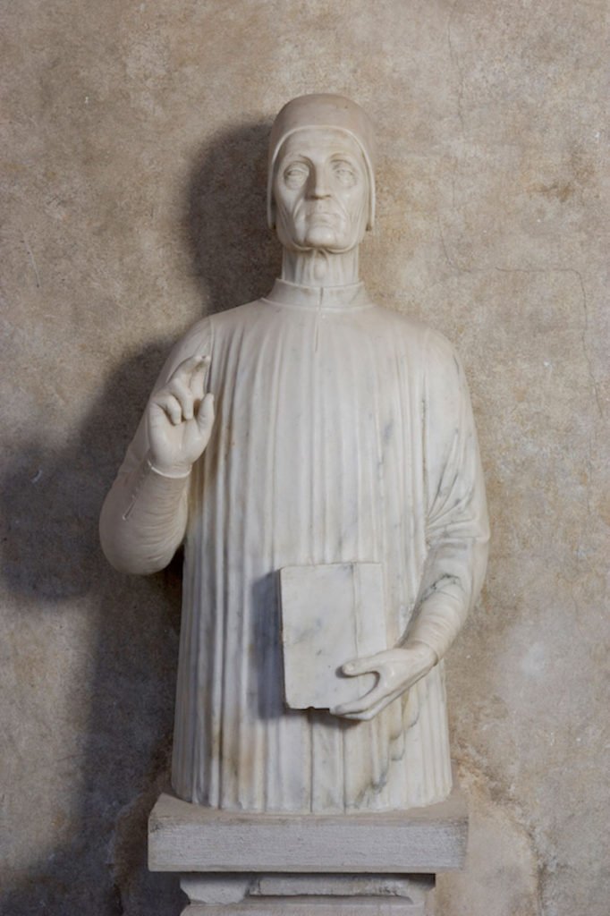 On the wall opposite the main altar two freestanding Veneto-Byzantine columns, probably from the eleventh century and possibly from the adjacent baptistery, flank a late fifteenth-century bust of the Blessed Lorenzo Giustinian (1381–1456), appointed the first Patriarch of Venice in 1451. The attribution of this bust is not certain, but it may be by an artist in the circle of Antonio Rizzo or Jacopo Bellini.