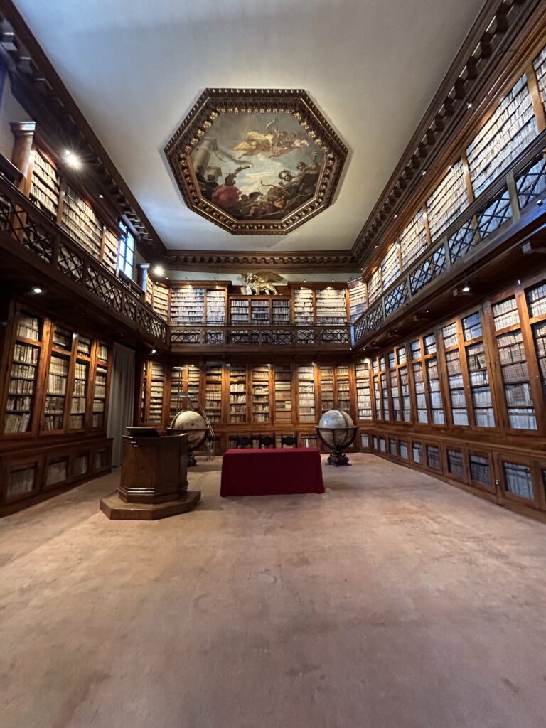 Today, the sculpture crowns the top shelves of the library in the Venice Patriarchal Seminary, where it was placed in the 1950s during the tenure of Patriarch Angelo Giuseppe Roncalli, who would later become Pope John XXIII. The sculpture originally came from the church of Madonna dell’Orto, where it adorned an organ likely built in the early 1520s by the renowned organist Giovanni Battista Facchetti from Brescia. The organ was originally situated above the door to the sacristy on the right aisle of the church, next to a now-lost suspended choir loft that once spanned the fifth bay. Although the organ was destroyed in 1865, the Lion of Saint Mark was removed in 1797. At that time, French authorities ordered the removal and destruction of all winged lions of Saint Mark across Venice and its territories. This sculpture is therefore one of the few to have survived the Jacobin efforts to erase what they perceived as emblems of the ancient patrician authority.