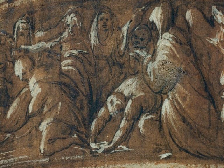 The tomb’s details had become shrouded by darkened varnishes and heavy overpainting and the wooden panels that comprise the painting were infested with wood-boring insects. Conservator Giulio Bono and his team removed these non-original surface layers before repairing the fragile wooden structure, inpainting any losses, and applying a final coat of protective varnish. Pigment analysis confirmed that the canopy of the tomb was painted using natrojarosite, a yellow pigment most commonly used in Ancient Greece, and not usually found in artworks from sixteenth-century Venice. Conservation treatment also confirmed that although the wooden structure of the tomb is of modest quality, the painting was completed by an expert hand.